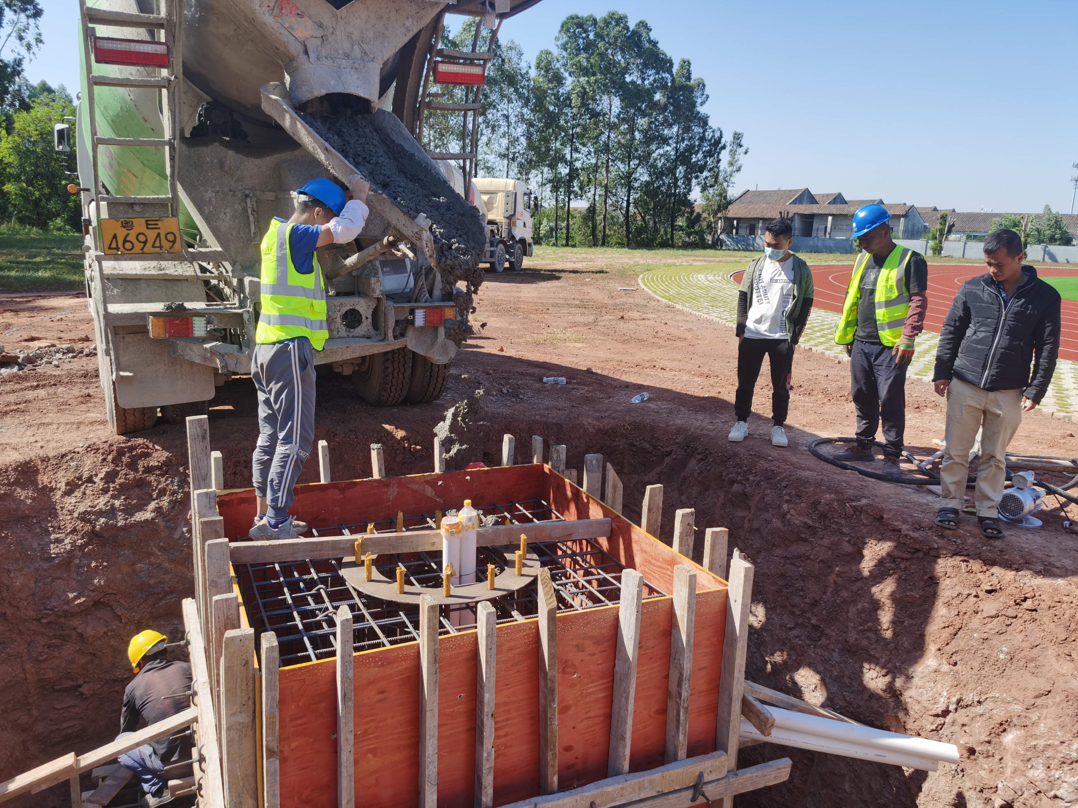 3.往地笼浇筑混凝土,