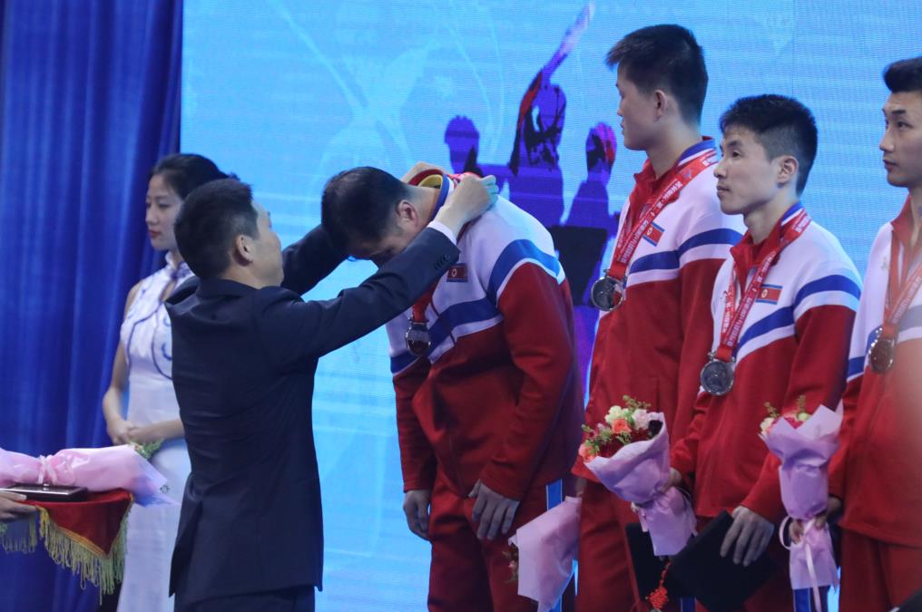 (七大洲张总为朝鲜队颁奖)